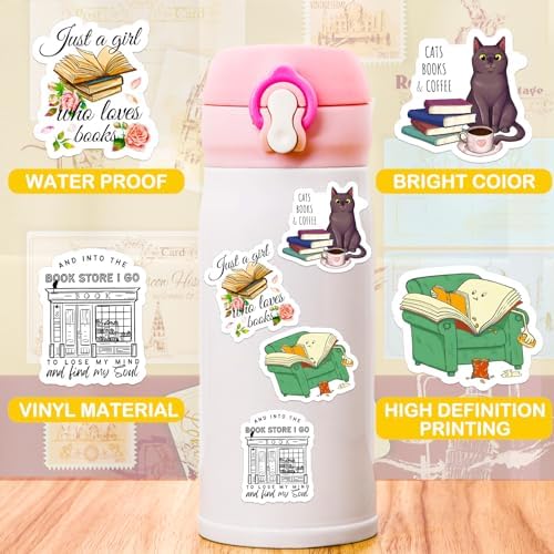 Quality PVC Materials: Our lovely reading stickers are made of advanced printing and waterproof vinyl PVC, with high-quality graphics and vivid colors, which are waterproof, strongly adhesive, non-toxic, durable, sturdy, and can be glued to most surfaces. Plus, our vintage stickers use non-marking glue, which has excellent repeated tackiness and leaves no residue after peeling.