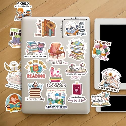 Versatile Collection: These book stickers are perfect for decorating Kindle cases, eBook readers, phones, iPads, laptops, scrapbooks, and water bottles, bringing a touch of reading love wherever you go.
