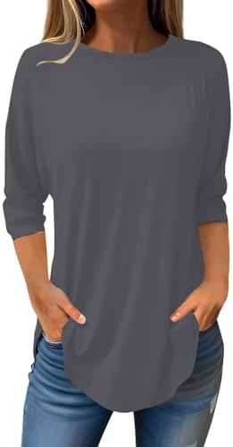 3/4 Sleeve Tops for Women Spring Round Neck Casual Striped Tunic T Shirts Three Quarter Length Womens Tops