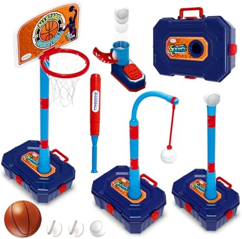 Portable and Effortless Assembly: Designed with convenience in mind, the basketball hoop’s base doubles as a storage box for accessories. The lightweight, handheld design makes it easy for kids to carry outdoors. This 4 in 1 Basketball Hoop and Tball set comes with all necessary assembly accessories, allowing kids to set up and start playing in no time, without the need for extra tools.