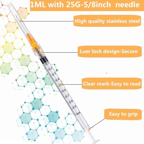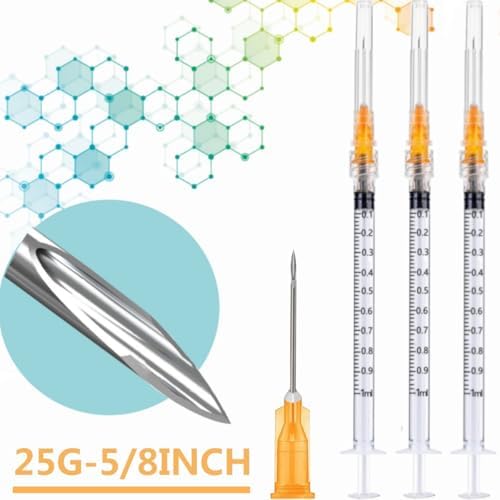 50pcs 1ml 1cc 25gauge – 5/8 inch disposable measuring syringe set – for science lab, chemical analysis or experiments, refilling, measuring and dispensing any liquid.