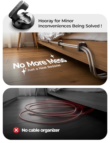 Perfect Slot Size for Wide Cable Compatibility: With a 0.27-inch (7mm) slot diameter, this versatile cord holders for nightstand, also referred to as desk cable clips, works perfectly with phone chargers, USB cords, HDMI cables, power cords, and slim cables like the iPhone silicone charging cord. Enjoy smooth cable pulling and a clutter-free space