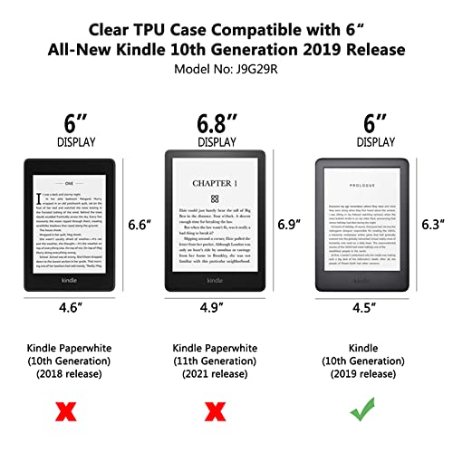 Compatible Models:-The Clear E-Reader TPU case only fit for 6‘’All-New Kindle 10th Generation 2019 Release, NOT Fit Kindle Paperwhite/Kindle Oasis or other devices (,Model No:J9G29R).Please check your device model before purchasing.(Not Included The Kindle Device)