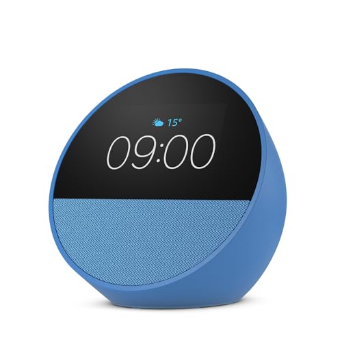 All-new Echo Spot, Smart alarm clock with vibrant sound, Alexa and Bluetooth | Blue