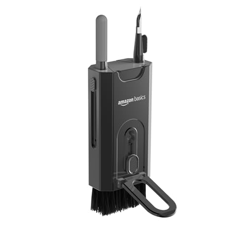 Introducing Amazon Basics 8-in-1 Laptop Screen Cleaner Kit. Effortlessly clean your devices with precision using the effective cleaning pen with metal tip and microfiber brush. Easily maintain your keyboard with the included keycap puller and high-density brush. Achieve streak-free screens with the microfiber cloth and back fiber wipe. Compact and portable, this kit ensures you can clean your devices anytime, anywhere. Ideal for phones, tablets, laptops, monitors, TVs, glasses, and camera lenses.