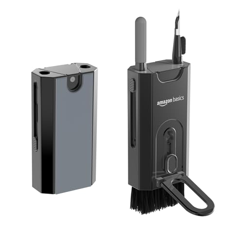 Introducing Amazon Basics 8-in-1 Laptop Screen Cleaner Kit. Effortlessly clean your devices with precision using the effective cleaning pen with metal tip and microfiber brush. Easily maintain your keyboard with the included keycap puller and high-density brush. Achieve streak-free screens with the microfiber cloth and back fiber wipe. Compact and portable, this kit ensures you can clean your devices anytime, anywhere. Ideal for phones, tablets, laptops, monitors, TVs, glasses, and camera lenses.