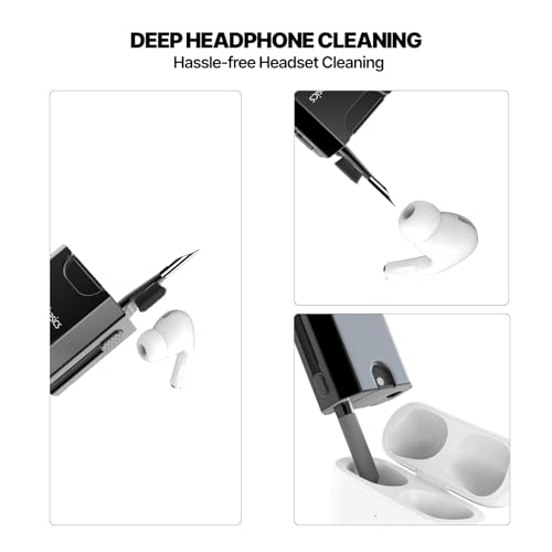 Precision Cleaning Pen: The cleaning pen ensures thorough removal of dirt and debris from crevices and holes. Ideal for cleaning delicate areas like charging ports and headphone jacks.