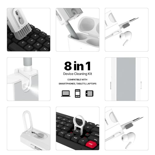 Introducing Amazon Basics 8-in-1 Laptop Screen Cleaner Kit. Effortlessly clean your devices with precision using the effective cleaning pen with metal tip and microfiber brush. Easily maintain your keyboard with the included keycap puller and high-density brush. Achieve streak-free screens with the microfiber cloth and back fiber wipe. Compact and portable, this kit ensures you can clean your devices anytime, anywhere. Ideal for phones, tablets, laptops, monitors, TVs, glasses, and camera lenses.