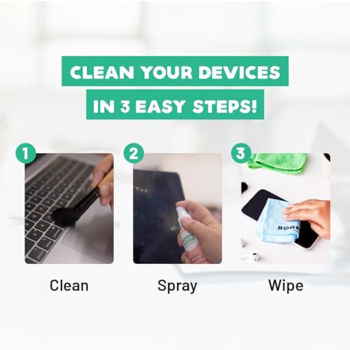 COMPLETE KIT: This kit includes a 100ml spray, 1 dense green microfiber cloth for hard surfaces, 1 fine blue microfiber cloth for lenses and screens, and 1 brush.