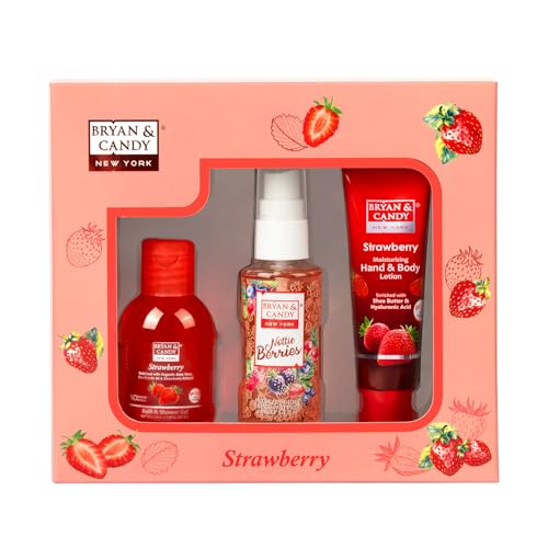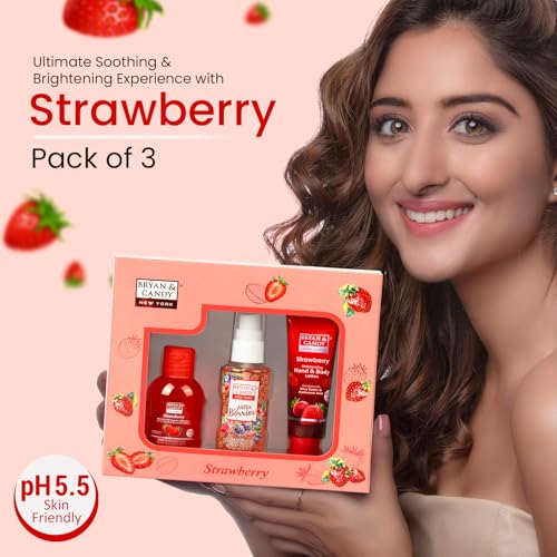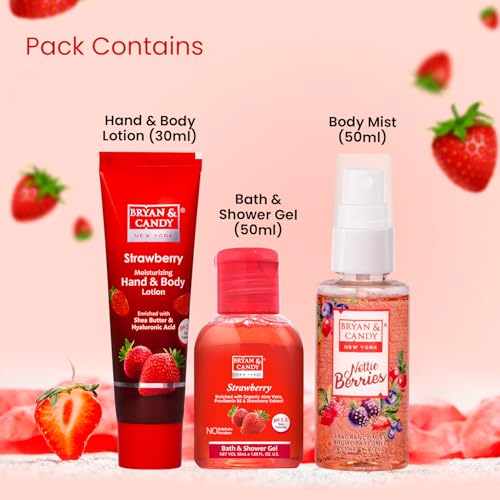 Bryan & Candy Strawberry Bath Kit Women’s Day Gift Set For Women| Shower Gel, Fragrance Mist, Hand & Body Lotion | Vegan, pH 5.5, SLS & Paraben-Free (Bath Kit)