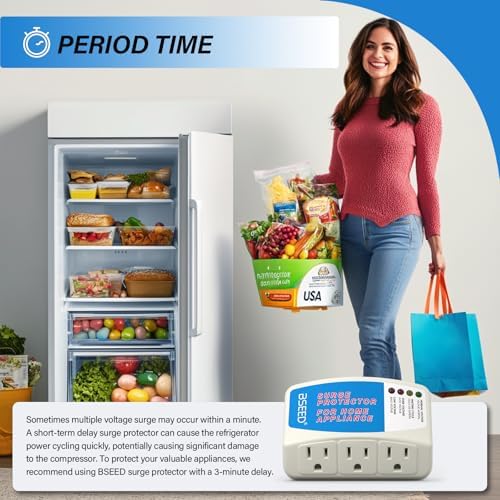3 Mins Period Time: Sometimes multiple voltage surge may occur within one minute. A short-term delay surge protector can cause the refrigerator power cycling quickly, potentially causing significant damage to the compressor. To protect your valuable home appliances, we recommend using BSEED surge protector with a 3-minute delay.