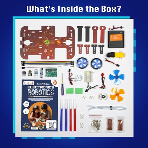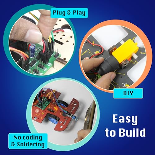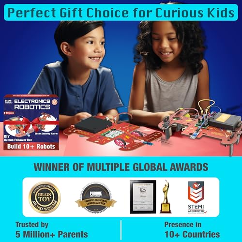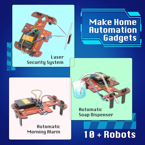 ⭐ 【WHAT YOU GET】 : 50+ parts including sensors, processor brain, motors, wheels, cables connecting wires, LED’s, pump, and top-up materials without the need for soldering, tools, or coding skills. Kids may use their ideas and creativity to build ten various types of building robots, like the Ninja Spy Bot, Doodle Bot, Shadow Bot, Yoki Bot, Bank Anti theft Sensor, and many more.