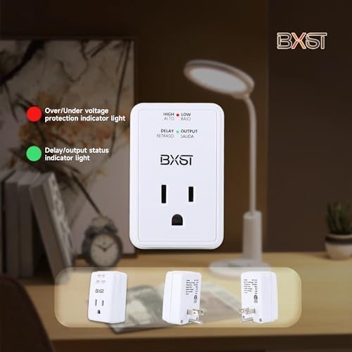 Intuitive Status Indicators and Smart Delay: The mini surge protector with clear overvoltage/undervoltage and delay indicator lights, this device provides real-time status updates. It includes a 3-minute automatic delay start to prevent damage from sudden power surges. After the delay, the green light indicates readiness. The red light flashes during high voltage protection and stays on during low voltage protection.
