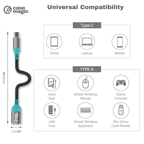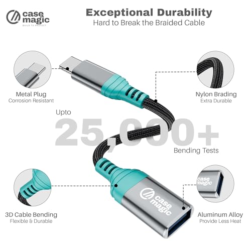 15W Fast Charging Support: The Case-Magic USB-A 3.0 Female USB-C OTG Adapter OTG Cable delivers up to 15W of fast charging power, ensuring quick and efficient charging for smartphones, tablets, laptops, and other Type-C devices, making it ideal for both home and on-the-go use.