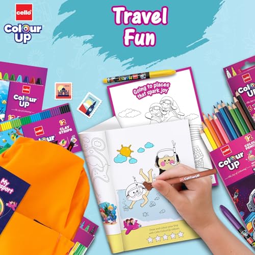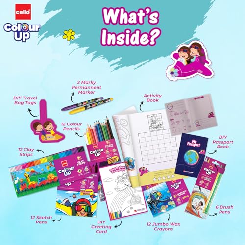 A perfect creative buddy for your kid, Cello Colour Up Travel Kit contains crayons, colour pencils, sketch pens, clay and markers along with fun travel-themed activities to keep your child engaged about his travels!