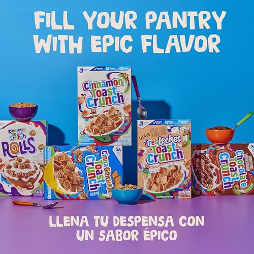 Get off to an epic start with Cinnamon Toast Crunch Cereal. Every crispy square is blasted with CINNADUST, that irresistible mix of real cinnamon and sugar. Enjoy this crispy, sweetened whole wheat and rice cereal as a ready to eat breakfast food. Simply pour a bowl of cold cereal with milk and dig into that satisfying crunch. Then slurp up the CINNAMILK, the sweet and awesomely tasty cereal milk at the bottom of your bowl. Every serving of this cinnamon cereal provides 16g whole grain (at least 48g recommended daily), 12 vitamins and minerals, and a good source of calcium. Make it a part of a quick and easy breakfast for teens, kids, and the entire family. Pack some in snack bags and enjoy this crispy cereal on the go. Add it to snack mix or cereal bars recipes for lunchbox snacks. Keep a box in your pantry for mornings or to use as a crispy ice cream topping. You can also sprinkle some cinnamon-y squares over frosted cupcakes and other desserts. Whether you’re looking for delicious kids snacks, trail mix ingredients, or a breakfast cereal for everyone in your household, General Mills cereals spread goodness from tots to grown-ups. Contains one cardboard box of crunchy Cinnamon Toast Crunch Breakfast Cereal, Crispy Cinnamon Cereal, 12 oz; Perfect for instant snacking, or a part of breakfast and meals.