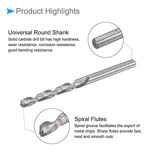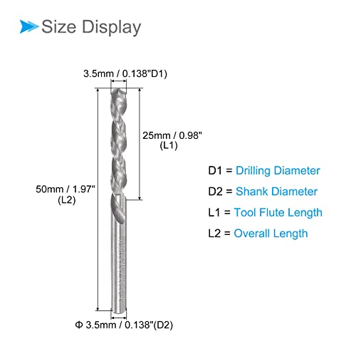 ★ Carbide Drill Bit Size — Drilling diameter: 3.5mm / 0.138″; tool flute length: 25mm / 0.98″; shank diameter: 3.5mm / 0.138″; overall length: 50mm / 1.97″; drilling direction: left hand; tool flute type: spiral; hardness: 91HRA