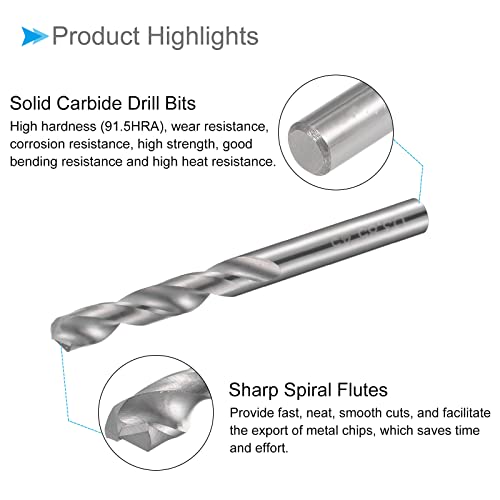 ★ Carbide Drill Bit Size — Drilling diameter: 3.85mm / 0.152″; tool flute length: 25mm / 0.98″; shank diameter: 3.85mm / 0.152″; overall length: 45mm / 1.77″; tool flute type: spiral; cutting hardness: up to HRC50; processing technology: fine grinding