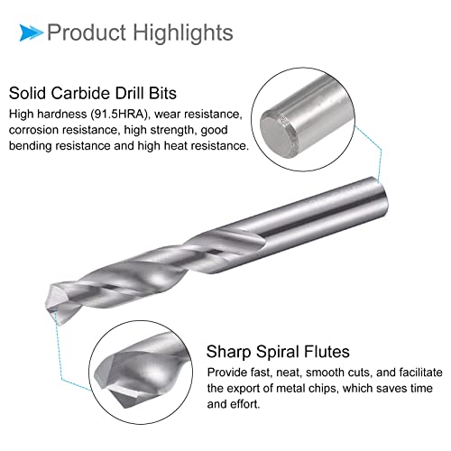 ★ Carbide Drill Bit Size — Drilling diameter: 5.55mm / 0.219″; tool flute length: 30mm / 1.18″; shank diameter: 5.55mm / 0.219″; overall length: 50mm / 1.97″; tool flute type: spiral; cutting hardness: up to HRC50; processing technology: fine grinding