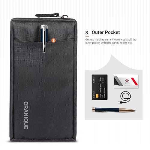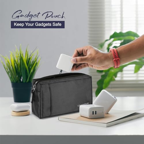 Cranique Water Resistant Dust Proof Laptop Charger Accessories Gadget Pouch is crafted from Superior Quality Fabric, Smooth and Reliable Zippers and overall Light Weight and Sleek Design. It comes with three pockets to carry your laptop charger, gadgets, cables, laptop mouse, power bank, pen drive, adapter, pen, earphone with complete protection.