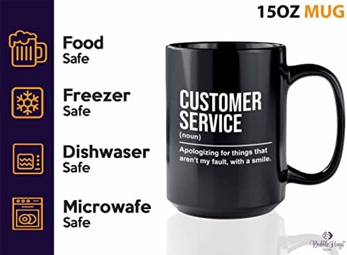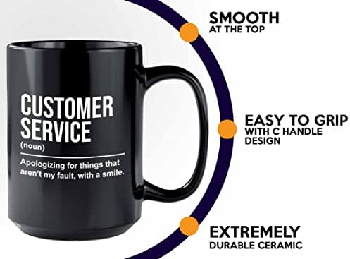 STURDY CUSTOMER SERVICE COFFEE MUG THAT LASTS FOR A LIFETIME – With an 15 oz capacity, this ceramic costumer service mug can withstand high temperatures so it can be used in the microwave and dishwasher. The unique design is printed on both sides with an outstanding print quality that will last for a long time.