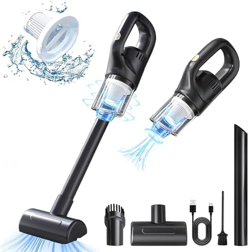 ➤No cord limitations, 1.2 lb weight: The handheld vacuum can be easily operated with one hand. Straight wind rail technology avoids suction loss, making the wind duct smoother, efficient and powerful. The vacuum cleaner has a suction power of 9000 to 10000PA. USB charging.