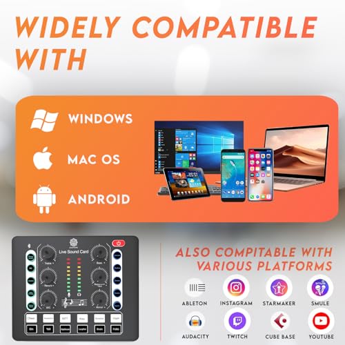 Plug and Play & Easy To Use: The Live sound card with multiple sound effects can be used on any mobile phone, computer, or game platform. You can connect to different devices (computer/ mobile phone/ laptop) by using different connection methods.