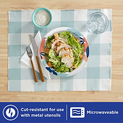 Microwavable, cut resistant, and coated with a Soak Proof Shield that can handle anything from salad dressing to burger grease. Perfect pairing with coffee cups, paper cups, and napkins for year-long use in your barbecues, dinners, lunch, and other meal occasions.