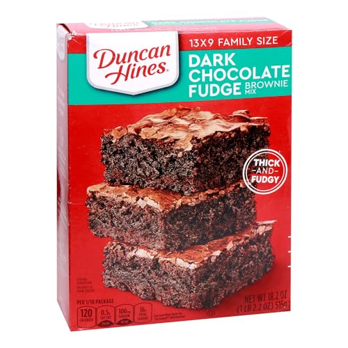 Mix up a batch of thick and fudgy treats for your family with Duncan Hines Dark Chocolate Fudge Brownie Mix. Oozing with fudge flavor, this boxed brownie mix features a decadent dark chocolate flavor in an easy chocolate dessert that comes out perfectly moist every time. Whip up a pan of dark chocolate brownies for a weeknight treat or to satisfy your chocolate craving. This time-saving brownie mix only requires eggs, water and vegetable oil. Mix the ingredients, spread it into your preferred pan size and bake the fudge brownies according to the package instructions. Each 18.2 ounce box makes enough brownie batter for a 13 by 9 inch baking pan, or bake it in an 8 or 9 inch pan for even thicker brownies. From decadent brownie mix, to single serve desserts, Duncan Hines has you covered when you’re ready to bake and create.