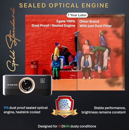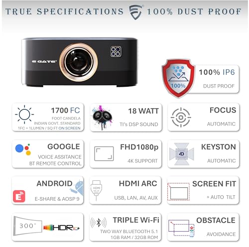 Display Features : 【100 %Dust Proof Light Engine】 – TRUE 800 ISO Lumens | Resolution Native Full HD 1080P with Support upto 4K with Wide Screen LCD (16:9) | 300″ massive Screen | Life Long Lamp” – 60000 Hours | HDR 10+ HLG | 9,000:1 Contrast Ratio
