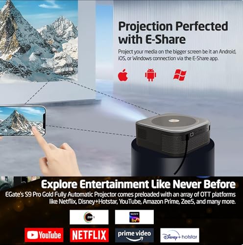 Special feature : 【Segment First】 – 100% Dust Free + Auto Focus & Keystone + Auto Obstacle Avoidance + Auto Screen Fit – Quad Core CPU – MALI GPU – 1GB RAM + 32 GB ROM – Preloaded NETFLIX and other OTT + Extra Ordinary Sound with DSP chip NTP8918, android