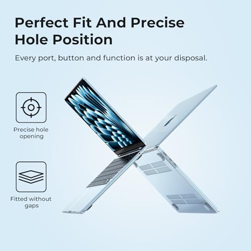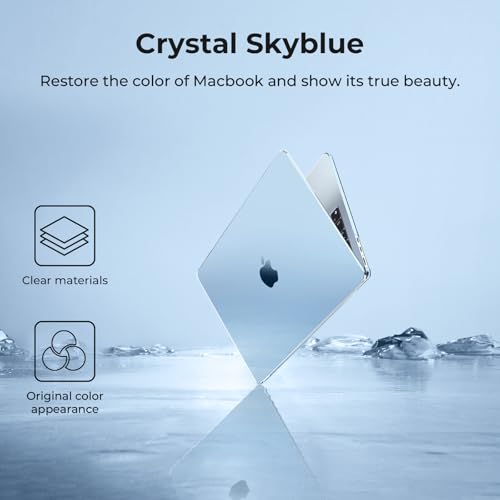 Perfect Match 2025 Sky Blue – This case has been precisely matched 1,000 times to perfectly match the latest 2025 MacAir 13-in Sky Blue appearance, and it blends perfectly with the exquisite design of your device. Note: Because the crystal case is almost transparent, we recommend buying a case in the same color as your MacBook. Sky Blue and Silver MacBooks can better show the color of Sky Blue