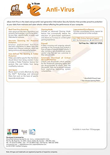 For any technical/installation/download/activation queries, please contact eScan at 1800 267 2900/+91 22 6772 2911; This item is non-returnable