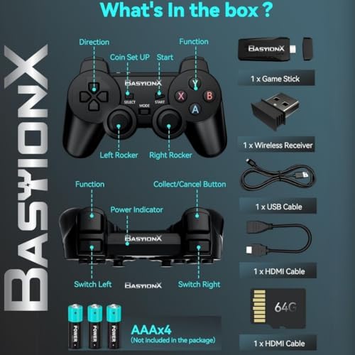 Included Components : 1x Wireless receiver, 1x Manual, 2x Controller, 1x Game Stick Console, 1x Charging cable