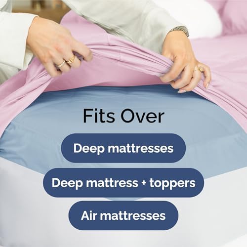 EXTRA DEEP POCKET SPLIT KING SHEETS / EXTRA DEEP FITTED SPLIT KING SHEETS: These bed sheets are for very deep pocket mattresses. They fit any mattress with pockets that are 18, 20, 21, 22 and 24 inches deep mattresses. There’s a stretchable elastic around the extra deep fitted sheet which stretches for a nice tug around your mattress. Perfect for extra tall & large mattresses. Rest assured these oversized sheets will stay on tight & stay in place!