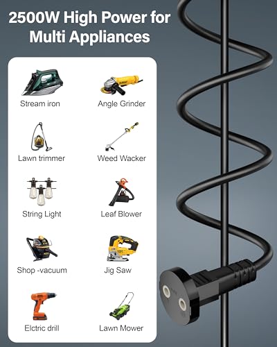 ▶UNIVERSAL COMPATIBILITY – Ideal for home, office, kitchen, outdoor garden and A Wide Range Of Low & High-Wattage Home, Office, And Kitchen Appliances, Such As Toasters, drills, Coffee Makers, Blenders, Mixers, Kettles, Water Purifiers, Chimneys, Televisions, Vacuum Cleaners, Treadmills, Dryers, Pressure Washers, Grills, lighting, lawn, garden equipment decoration, phone chargers, vacuum cleaners, and other household electronics need a little extra length. NOTE – Only compatible with appliances