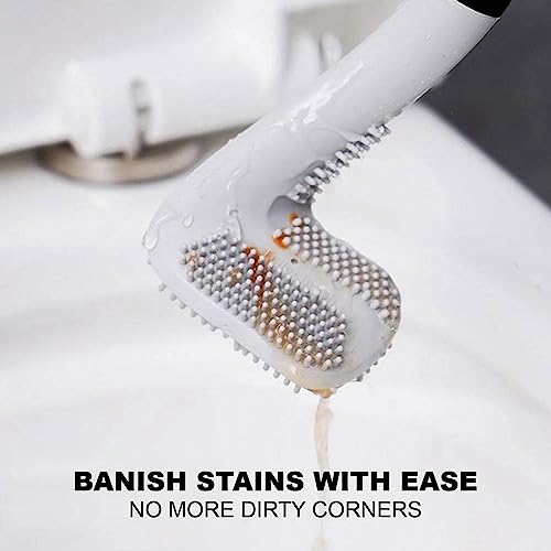 ✅ MODERATELY SOFT & NON-SCRATCHING BRISTLES: The brush’s bristles are moderately soft, allowing them to be bent freely without scratching the toilet surface. Even when applying great force, the brush head will not damage or leave marks on the toilet, ensuring safe and effective cleaning.