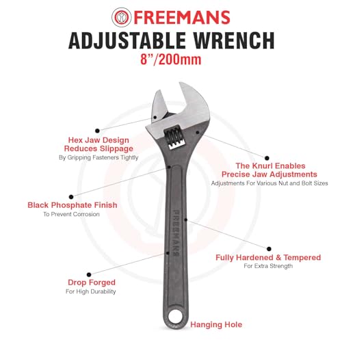 This 10 inch wrench features an adjustable jaw that can grip various sizes of nuts and bolts. Made of alloy steel which offers exceptional strength and corrosion resistance. The phosphate finish provides a smooth surface and helps prevent rust and corrosion. Suitable for plumbing, automotive, and general household repair tasks