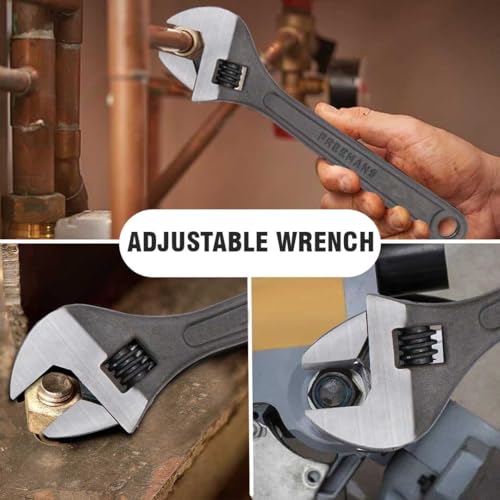 Versatile Combo of 3-piece plumbing tool kit includes an 8-inch adjustable wrench, 8-inch combination pliers, and a 10-inch pipe wrench