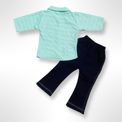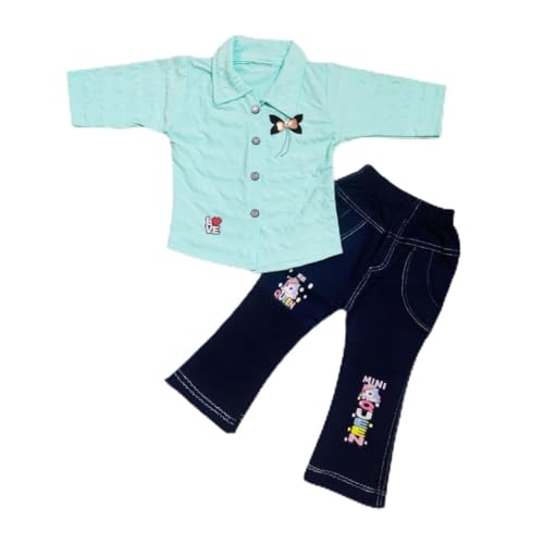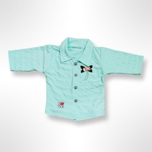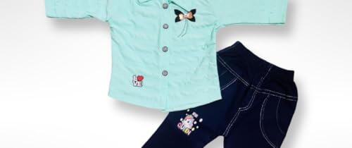 Dress your little one in style with this charming two-piece outfit set. The mint green shirt features delightful details including a sweet butterfly embellishment and a cute ‘LOVE’ motif, complemented by practical button closures and a classic collar. The coordinating navy blue trousers are designed with comfort in mind, showcasing adorable mini prints and contrasting stitching details. Made from soft cotton fabric, this ensemble offers both comfort and style for your little fashionista. The shirt’s short sleeves make it perfect for casual wear, while the trousers feature an elastic waistband for easy dressing. This versatile set combines playful design elements with practical functionality, making it an ideal choice for everyday wear or special occasions. The contrasting colours create a balanced, coordinated look that’s both trendy and timeless.