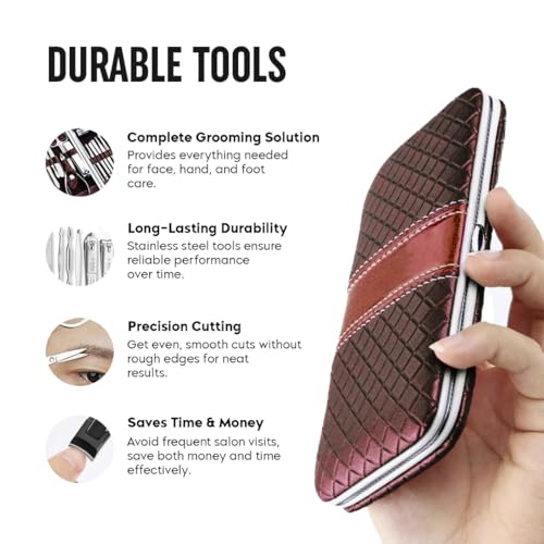 {𝐃𝐔𝐑𝐀𝐁𝐋𝐄 𝐒𝐓𝐀𝐈𝐍𝐋𝐄𝐒𝐒 𝐒𝐓𝐄𝐄𝐋 𝐂𝐎𝐍𝐒𝐓𝐑𝐔𝐂𝐓𝐈𝐎𝐍 𝐅𝐎𝐑 𝐋𝐎𝐍𝐆-𝐋𝐀𝐒𝐓𝐈𝐍𝐆 𝐔𝐒𝐄} : Each tool in this kit is crafted from high-quality stainless steel, offering superior durability, rust resistance, and precision. The robust design ensures that the tools maintain their sharpness and functionality over time, providing a reliable grooming experience with every use. Perfect for daily care or occasional touch-ups, this set is built to last and stay sharp even with frequent use.