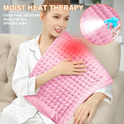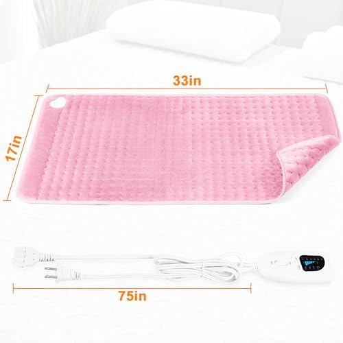 Heating Pad-Electric Heating Pads for Back,Neck,Abdomen,Moist Heated Pad for Shoulder,Knee,Hot Pad for Arms and Legs,Dry&Moist Heat & Auto Shut Off(Light Pink,33”×17”)