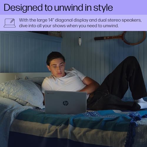 The HP Chromebook 14” Laptop lets you take on the day with an Intel processor paired with the easy to use and easy to love Chrome OS. With plenty of memory and wireless connectivity it is easy to check everything off your list. Plus, this laptop is designed to be more sustainable using ocean-bound plastic and post-consumer recycled plastics. The HP Chromebook 14” Laptop comes with a 45 W USB Type-C power adapter and goes from 0 to 50% charge in 45 minutes. Plus, made with the planet in mind, this HP notebook is EPEAT Gold registered and ENERGY STAR certified. HP is here to help. This HP computer comes with 1-year limited hardware warranty and 90-days limited technical support for software and initial setup with 24-hour, 7 days a week web support when shipped from and sold by Amazon.com.ENERGY STAR and the ENERGY STAR mark are registered trademarks owned by the U.S. Environmental Protection Agency. Based on U.S. EPEAT registration according to IEEE 1680.1-2018 EPEAT. EPEAT status varies by country. Visit www.epeat.net for more information.