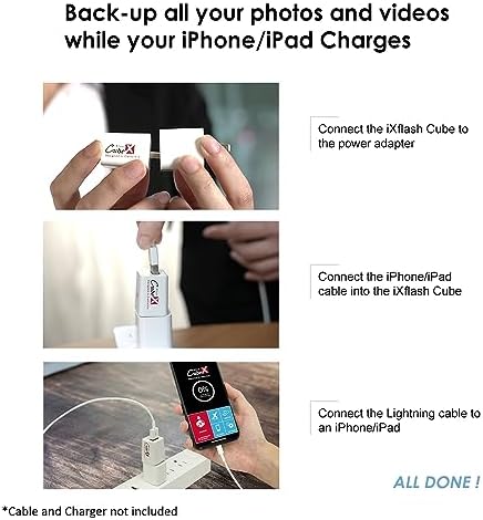 🎯【Backup All Photos and Videos while Charging】 – While your iPhone or iPad is charging, the iXflash Cube will automatically backup all stored photos and videos (including those stored on your iCloud account when connected to Wi-Fi). 🎯【Won’t Repeat】 – Only backs up images and content not already loaded onto the iXflash Cube. 🎯【Goes into Dark Mode】 – To prevent further drain on the iPhone or iPad battery, the iXflash APP can go into dark mode, which reduces power consumption.