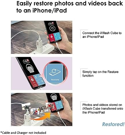 🎯【Restore content back to iPhone or iPad】 – Restore all the photos and videos back to your iPhone / iPad, maintaining all the original formats (including Live Photo and Burst), dates, locations, names, and more. 🎯【Protects images against loss】 – It’s very common for users to lose their iPhone or iPad and the iXflash Cube Drive is designed to make it easy to maintain backup images and video and restore those images back onto another iPhone or iPad.