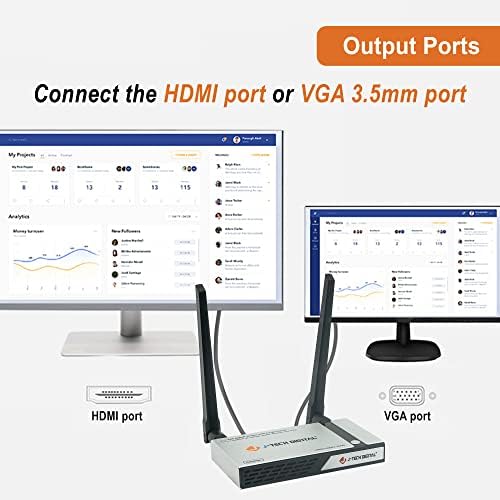 π ππππ β JTECH-WDEX-50M2 allows users to transmit HDMI audio & video up to 98 FT away without the use of cables! Using 5GHz broadcast technology, transmit HDMI source devices like Apple Macbook, Windows PC, Playstation, XBOX and set top boxes.