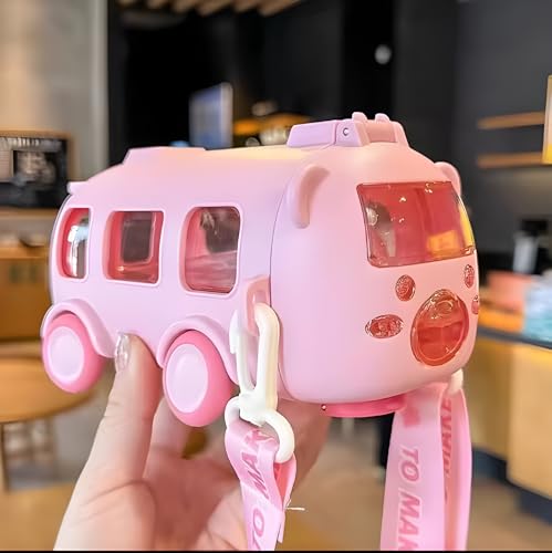 KINGPININDIA Water Bottle For Kids,Premium 500 ml Bus Toy Water Bottles For School Girls Boys,Teenager Childrens,Cute Insulated Unbreakable Trending Stylish Thermal Sipper For Birthday Gift (PINK)