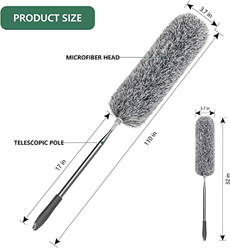 Extendable Long Pole- With high-quality 100-inch long stainless steel telescopic pole, you don’t need to take risks cleaning the high areas anymore, just use this duster for cleaning and extend the length of duster pole from 30 to 100 inches to clean the dust easily.