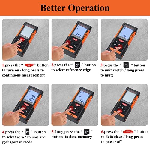 ★【BETTER OPERATION】-Laser meter makes measurement easy and save you valuable time. Quicker and more convenient to measure than tapes.Any measuring task is now a one-person job – you don’t need someone else to hold the other end of the tape.