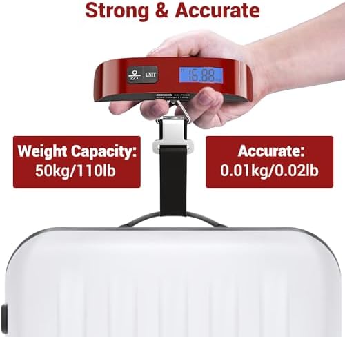 【Durability and Accuracy】: Suitcase scale is 110lb/50kg capacity. Accuracy of up to ± 1% and 1 degree celsius, graduation is 0.01kg/0.02LB//1℃/1℉